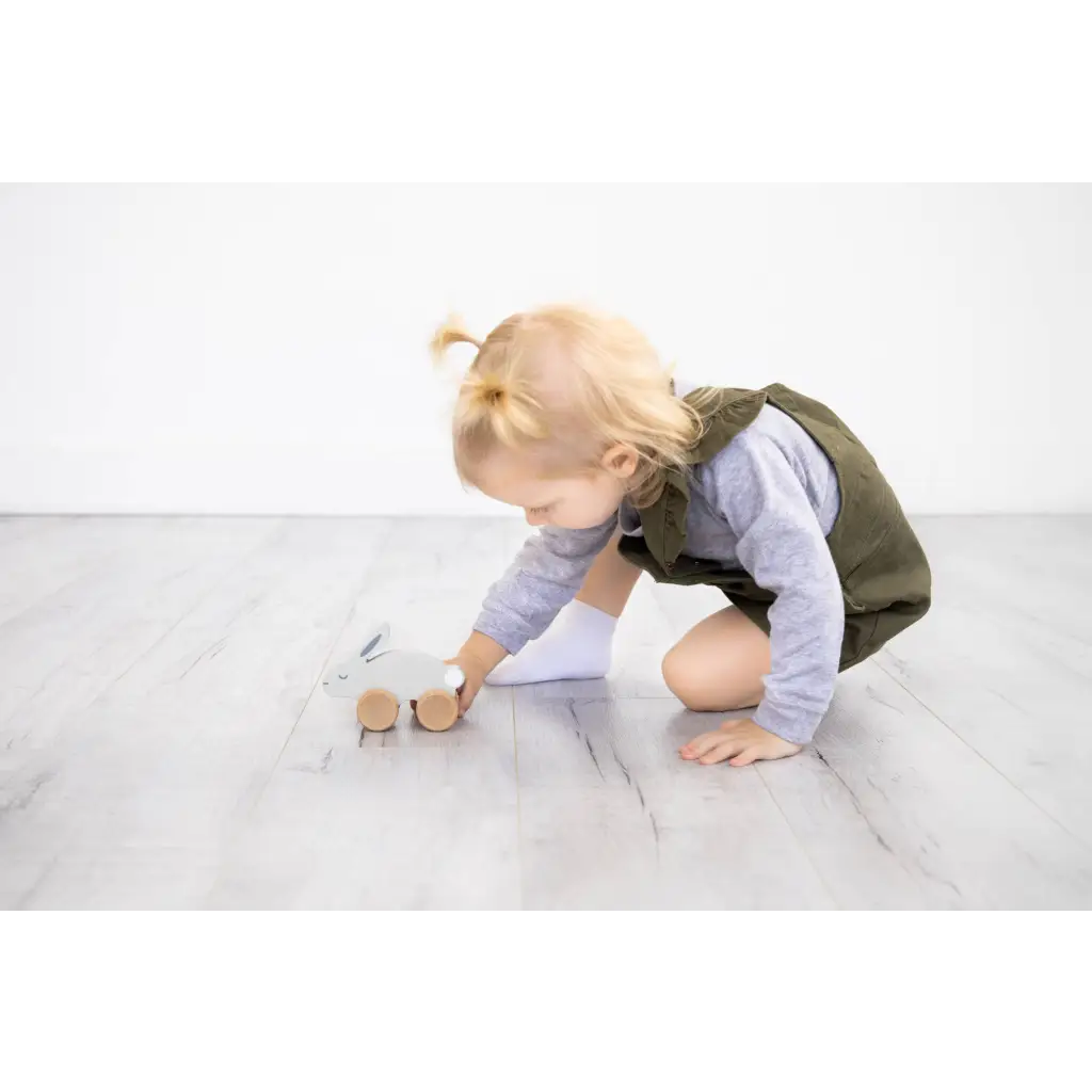 This fun push and roll baby toy will help parents and their little ones create special memories they will share and love for years to come! And when playtime is over, this wooden bunny makes the perfect nursery décor accessory!