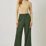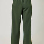 Olive green everyday tracksuit pants with tan wide-leg elastic waistband